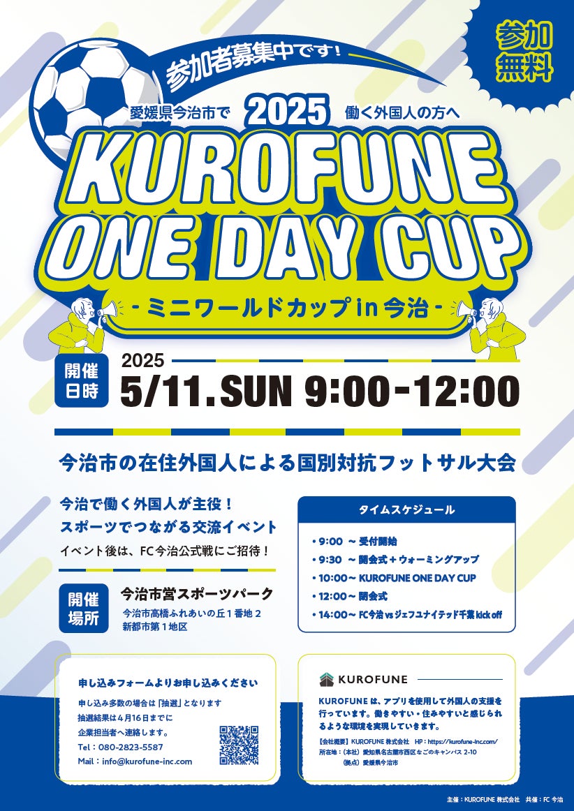 KUROFUNE ONE DAY CUP - ミニワールドカップ in 今治 - を開催いたします。参加企業大募集しております。