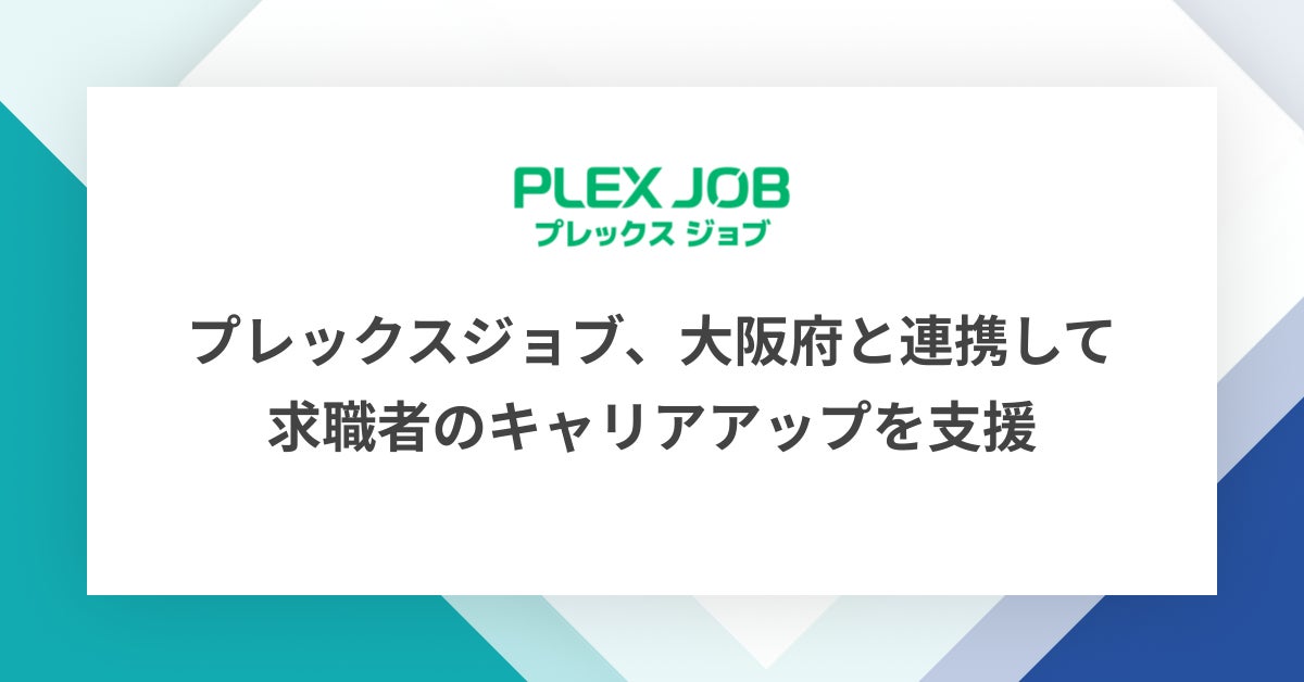 株式会社プレックス(所在地:東京都中央区、代表取締役社長:黒﨑 俊、以下当社)は、大阪府(所在地:大阪府大阪市中央区、知事:吉村洋文)が提供する「大阪府スキルアップ支援金」を通じて、当社が提供する人材採用支援サービス「プレックスジョブ」利用者のキャリアアップを支援していきます。
