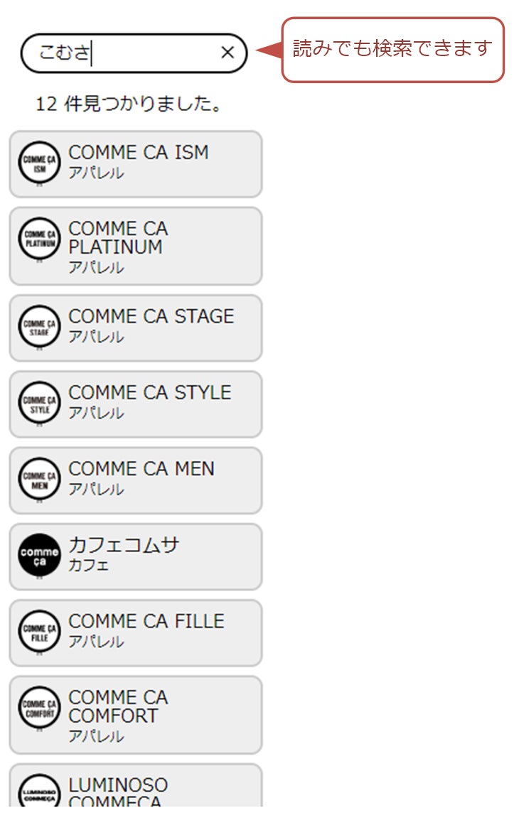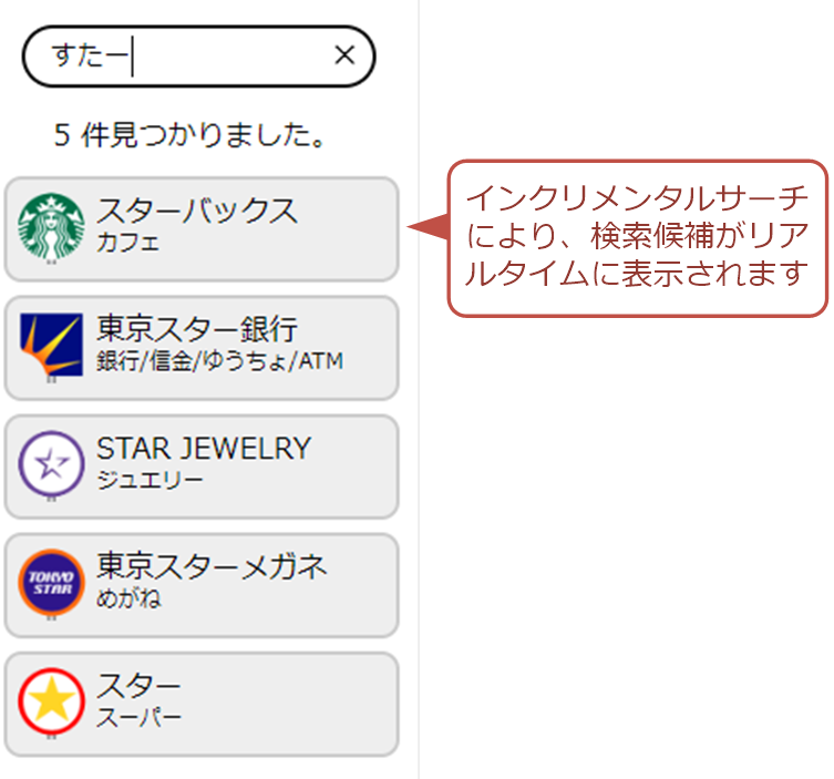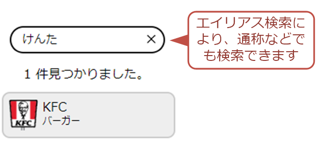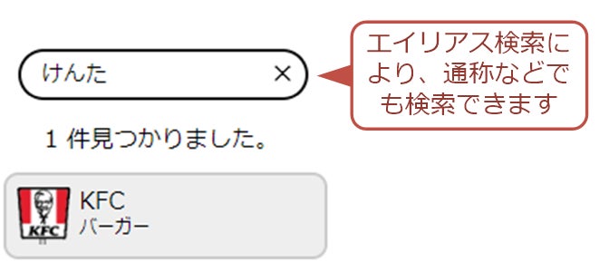 チェーン名やカテゴリ名を正確に入力しなくても、読みや通称名などでも検索できます。