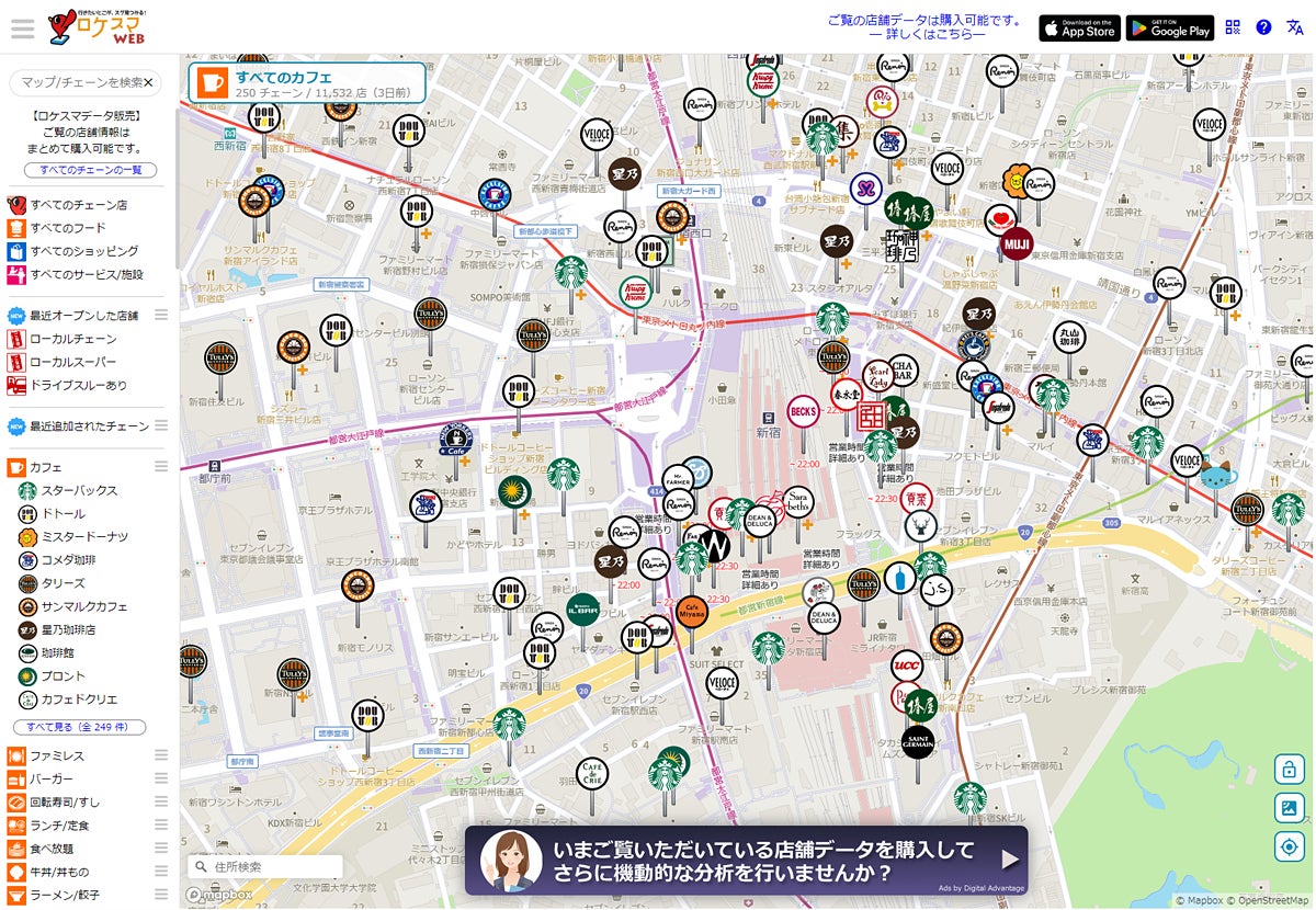 毎日更新する店舗情報を無料でマップ検索