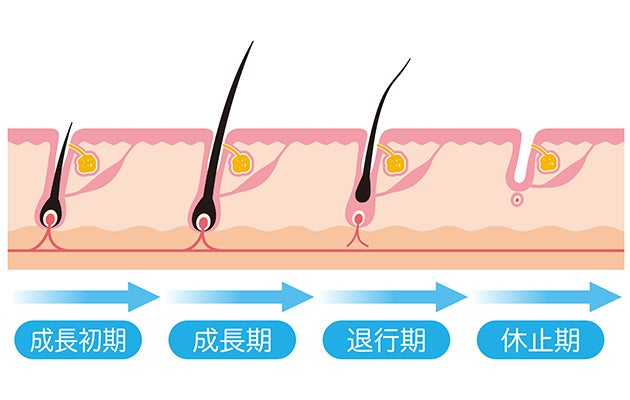 そもそも健康な髪は、発毛後 4 ~6年の間成長し続けます。この成長期を過ぎると、約3週間の退行期、約3ヶ月の休止期となり、その後再び成長期に入ります。これをヘアサイクルと言います。