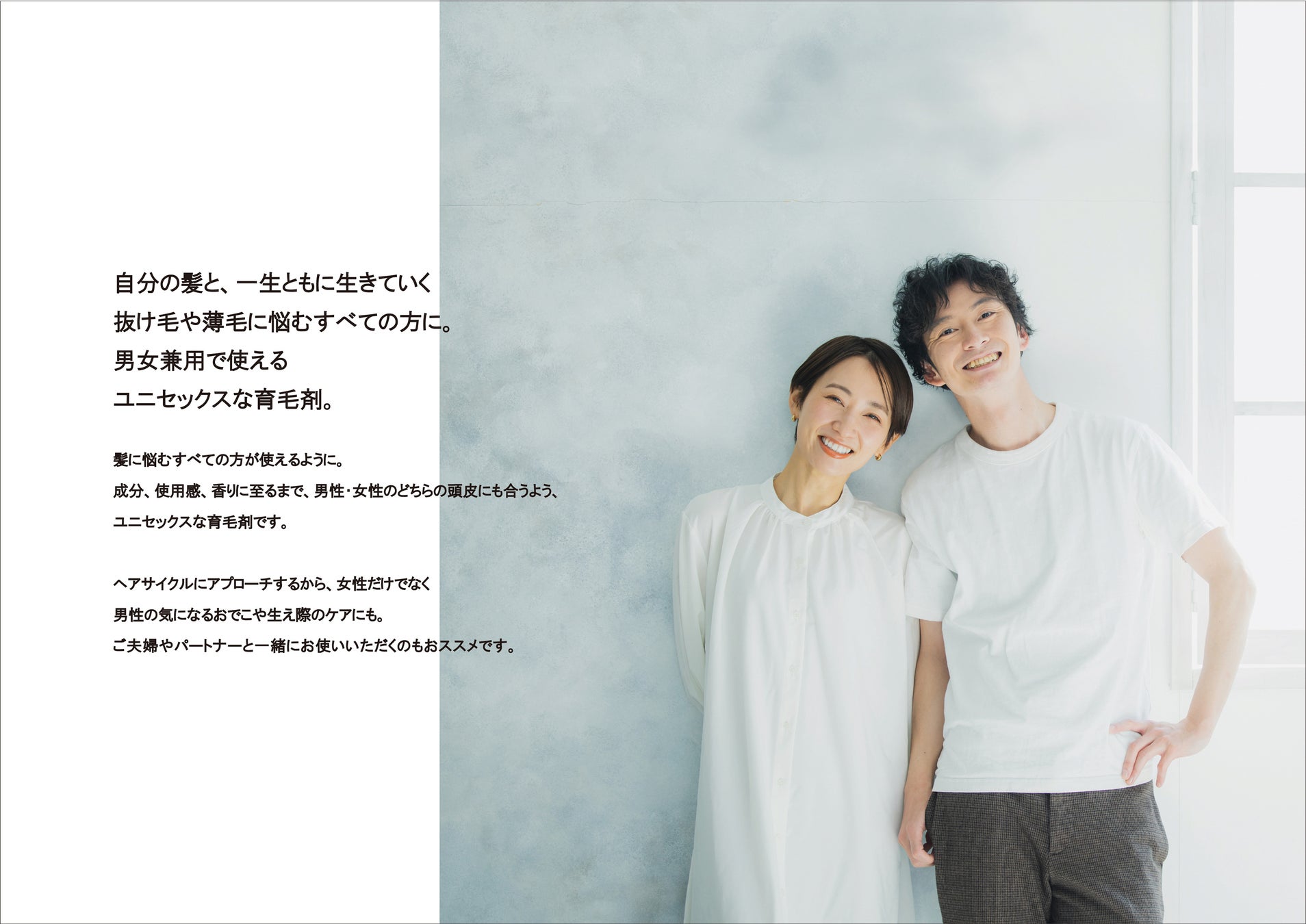 二人でも使えるからこそ高まる美容意識は、きっとこれまでの生活に新しい風を吹かせてくれます。ぜひ、ご夫婦やパートナーと一緒につかっていただきたい育毛剤です。