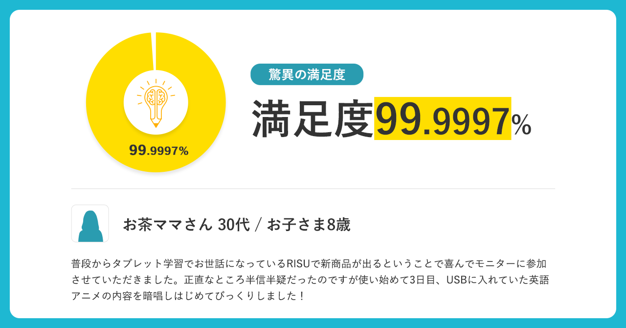 「RISU算数」は1人ひとりの学習データを分析し、最適な問題を出題するタブレット教材。タイミングの良い復習や、つまずいた際には動画での解説の配信を行うことにより、苦手を克服し得意を伸ばします。