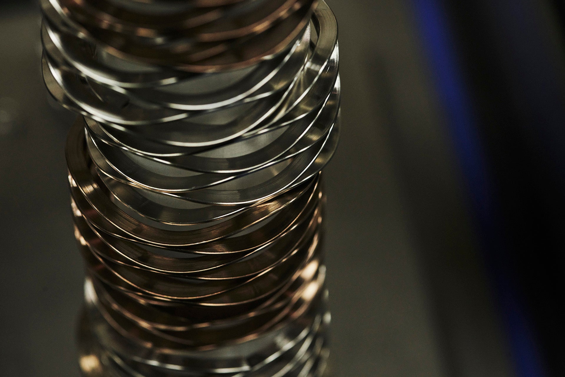 その強さを可能にしたのは、張力の高いばね用ステンレス鋼です。柔軟さも兼ね備えた特殊素材は、