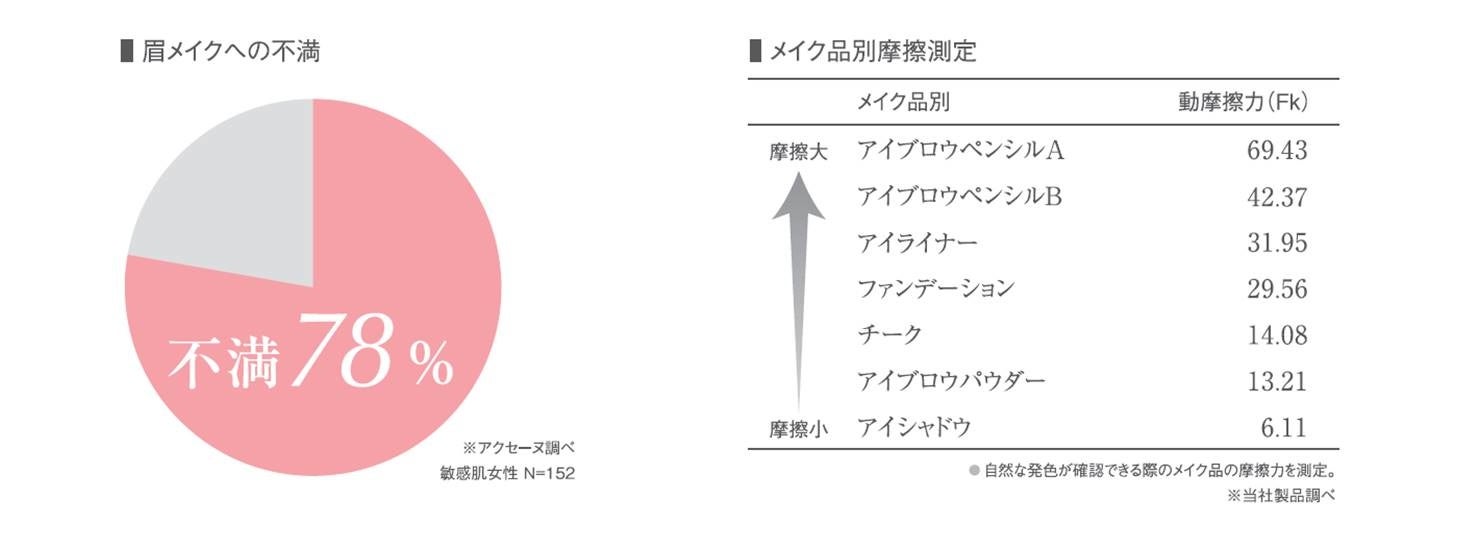 多くの敏感肌女性の最重要視する眉メイクであるにも関わらず、現状に強い不満を抱いていることが分かりました。