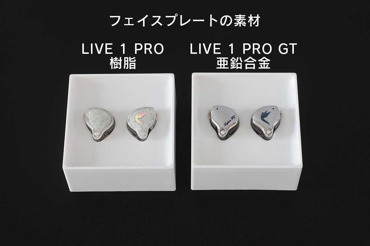 SUPERTFZ LIVE 1 PRO GTは、LIVE 1 PROをベースにリチューニングや筐体素材の変更など、更なるブラッシュアップをしたアップグレードモデルです。LIVE 1 PROのオール樹脂筐体に対してLIVE 1 PRO GTでは亜鉛合金製のフェイスプレートを採用。アクセサリーのように審美性が高まることに加え、音質の向上にも寄与しています。