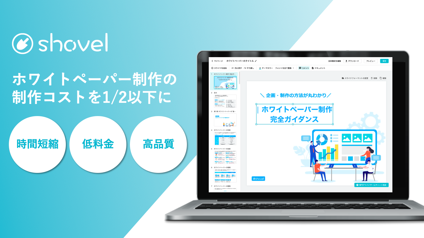 BtoBマーケティング支援のシャベル株式会社(本社:東京都渋谷区/ 代表取締役:高橋舞伎)は2月18日(木)、高品質のホワイトペーパーを簡単に制作できるSaaS「Slidemaker(スライドメーカー)」の事前登録募集を開始しましたので、お知らせ致します。