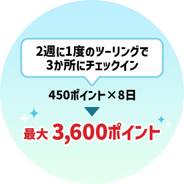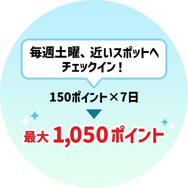 【ポイントプレゼント】一か所のチェックインに付き150ポイントをプレゼント、例えば7/17-9/1の間に20回チェックインするだけで3,000ポイントがプレゼントされます。