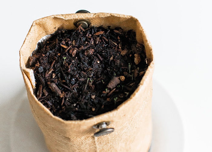 材料は、再利用した素材や、バクテリアを含む素材を混合することで、環境にもどるように設計しています。