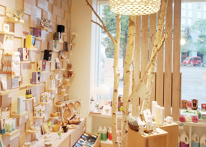 当店は、“国連が定める持続可能な開発目標(SDGs)”の取り組みの一環として、東京都港区より『みなとモデル二酸化炭素固定認証制度』を取得しました。店内は、 国産木材を床や壁、棚へふんだんに使用しており、まるで森林にいるかのような木の香りに包まれます。