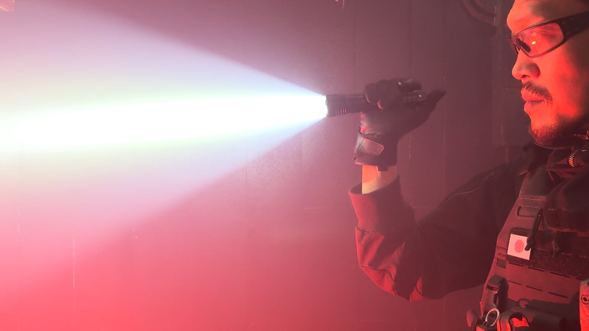 相手の目に光を当てることでの護身、危険箇所の検索、災害対策などに使用できるライトです。警察・自衛隊向けに開発された製品ですが、一般の方々の防犯防災対策に有効なアイテムです。