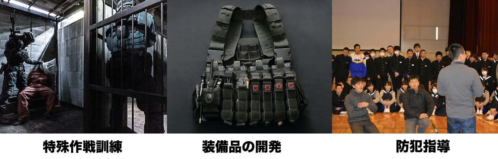 元警察・自衛隊の特殊部隊員が在籍し、その経験・知識を基に「警察・自衛隊向け装備品」と「戦術戦技」の研究・開発を行っております。プロの声を反映させた、オリジナリティーある装備品をお客様へ提供しています。
