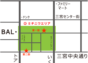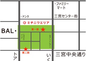 演奏エリア:第一部 三宮本通商店街内の空き店舗(中央付近北側)