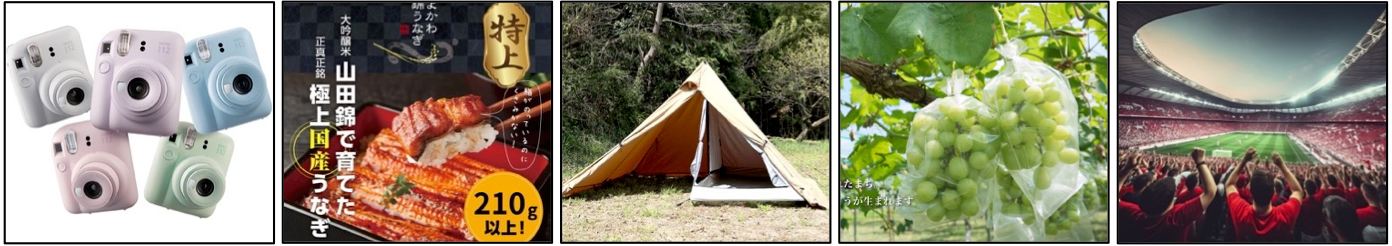 8月31⽇時点で獲得した累計マイレージのランキングの上位10名様と15位〜100位までの下一桁が0と5のランキングの方(15位、20位、25位、、、100位)18名様の合計28名様に、インスタントカメラ”チェキ”、山田錦で育てた兵庫県吉川産の⾼級うなぎやキャンプグッズなど豪華景品をプレゼントします。