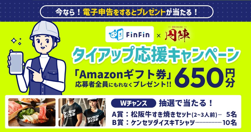 建設業特化型マッチングサービス「建設円陣」と、フリーランス・個人事業主向けスマホ会計アプリ「FinFin」ユーザー限定キャンペーン~Amazonギフト券650円分プレゼント&豪華景品のWチャンスも!~