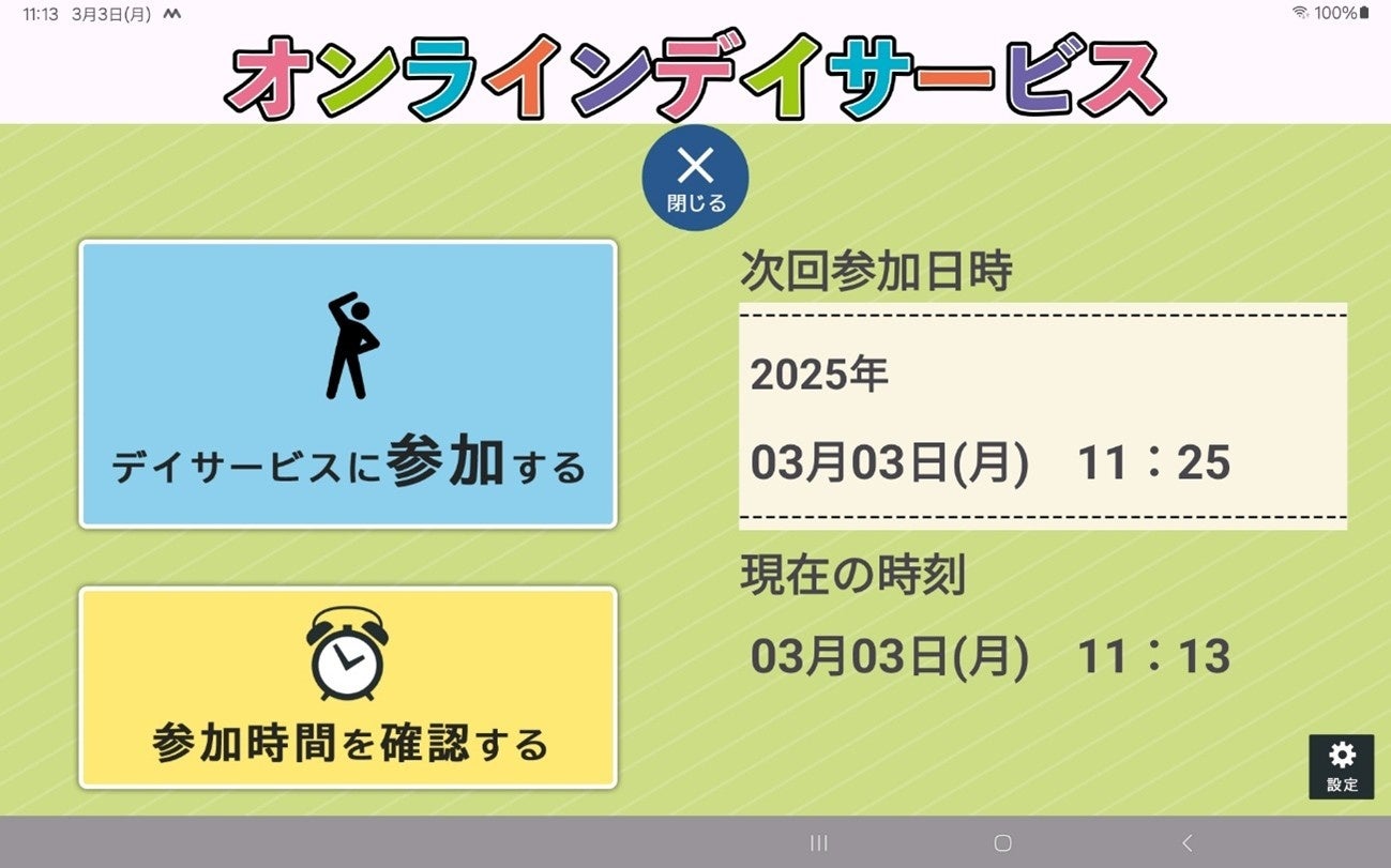 合同会社さわもとは、2023年4月からオンラインデイサービスを本格始動ました。タブレット端末を通じて専門スタッフや参加者同士が交流し、合唱や体操、回想法など様々なプログラムを提供しています。2023年に高知OIP(オープンイノベーションプラットフォーム)をきっかけに高知県内外のIT企業とチームを組み、高齢者にも使いやすいビデオ通話システムと、一切操作しなくても参加できる専用タブレットアプリを開発しました。システム開発の実証実験でご協力いただいた参加者の皆様からも「難しいことは何もない」「久しぶりに友人にあえて嬉しかった」と、高評価をいただいています。