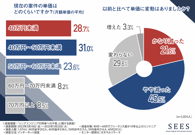 以前よりも案件の月額単価が下がった、と実感しているシニアエンジニアが多いようです。