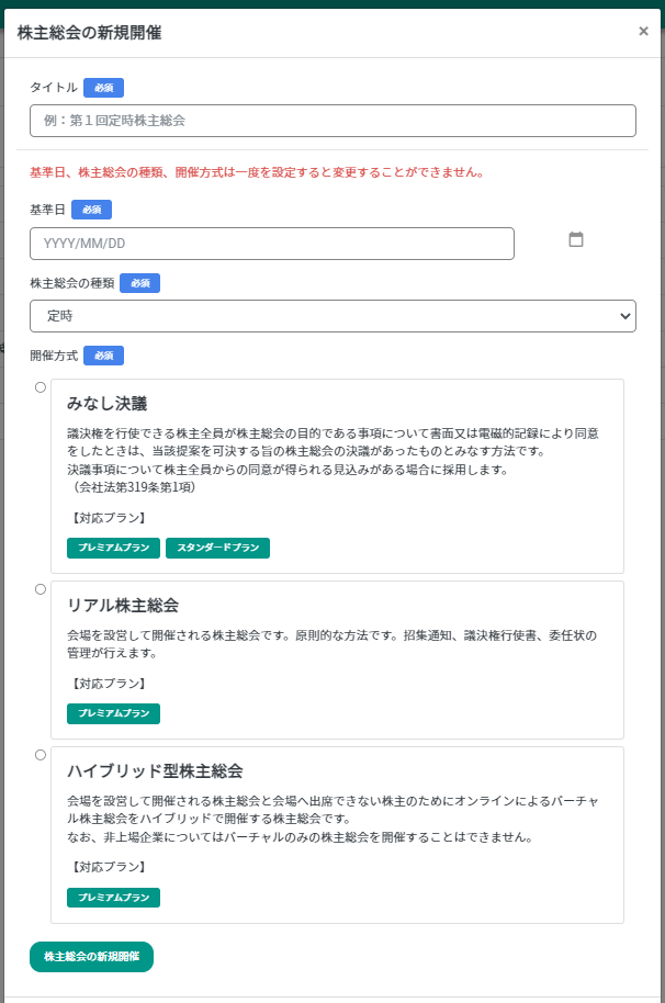 変更点その2 スタンダードプランにも株主総会管理機能を開放(みなし決議のみ)