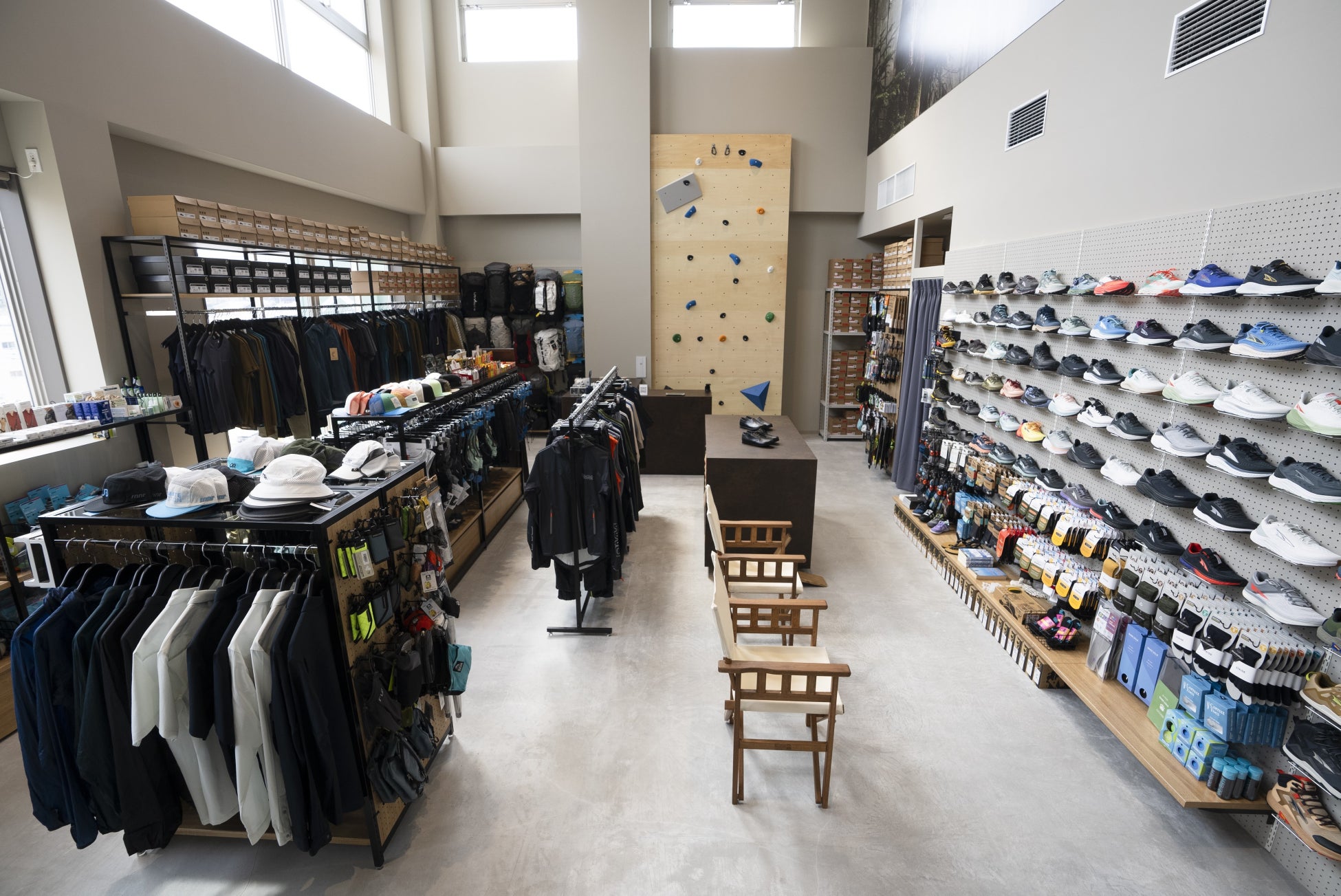 新本店は地上4階のビル1棟を改装しており、1階が店舗スペース、2階がフリースペース、3階から上は本社オフィスを構えています。フリースペースではお客様への体の使い方のアドバイスや外部専門家による講習会、様々なイベントを実施するほか、STRIDE LABでしか味わえない接客体験をご提供するため、支店スタッフの接客研修の場として活用します。
