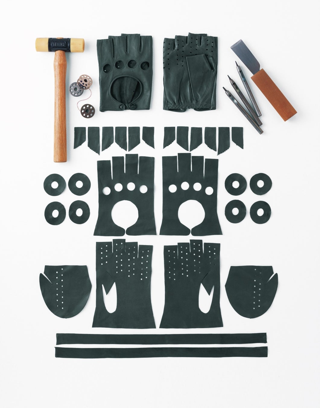 手袋は小さな装飾品ですが、多くのパーツからつくられています。そのひとつひとつは綿密に計算されたパターン(裁断型)によって、人の手でつくられます。フィット感と美しいスタイルにこだわったアルタクラッセカプリガンティでは、デザイン別、さらに裏地別に多数のパターン(サイズの種類)をそろえています。ボディカラー・裏地素材・ステッチカラー・パーツカラー・イニシャルなど、バリエーション豊富なカスタマイズで、あなただけの手袋を作り上げることができます。