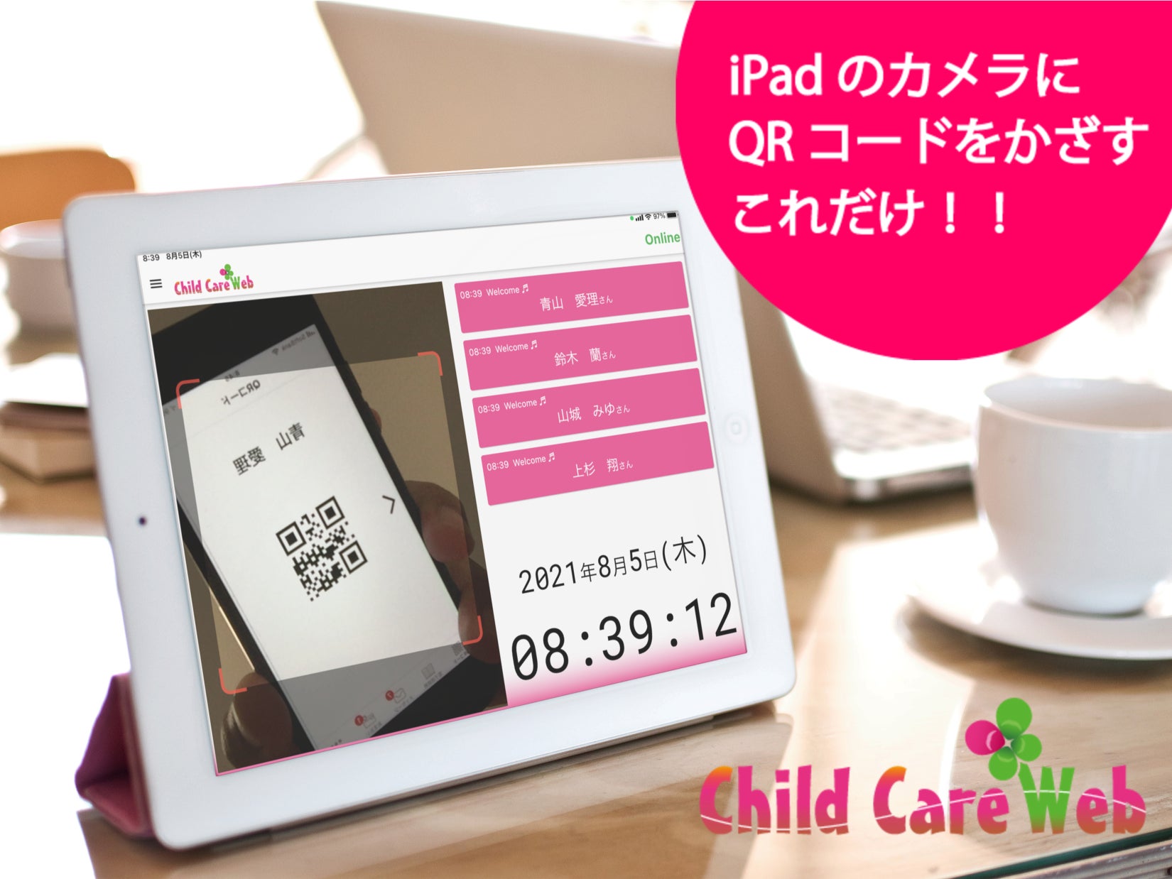 QRコードをかざすだけの簡単操作で登降園手続きが完了。欠席の連絡もスマホ専用アプリChildCareWeb CoNNectから送信。24時間365日、いつでも保育施設に連絡を送信することが可能です。