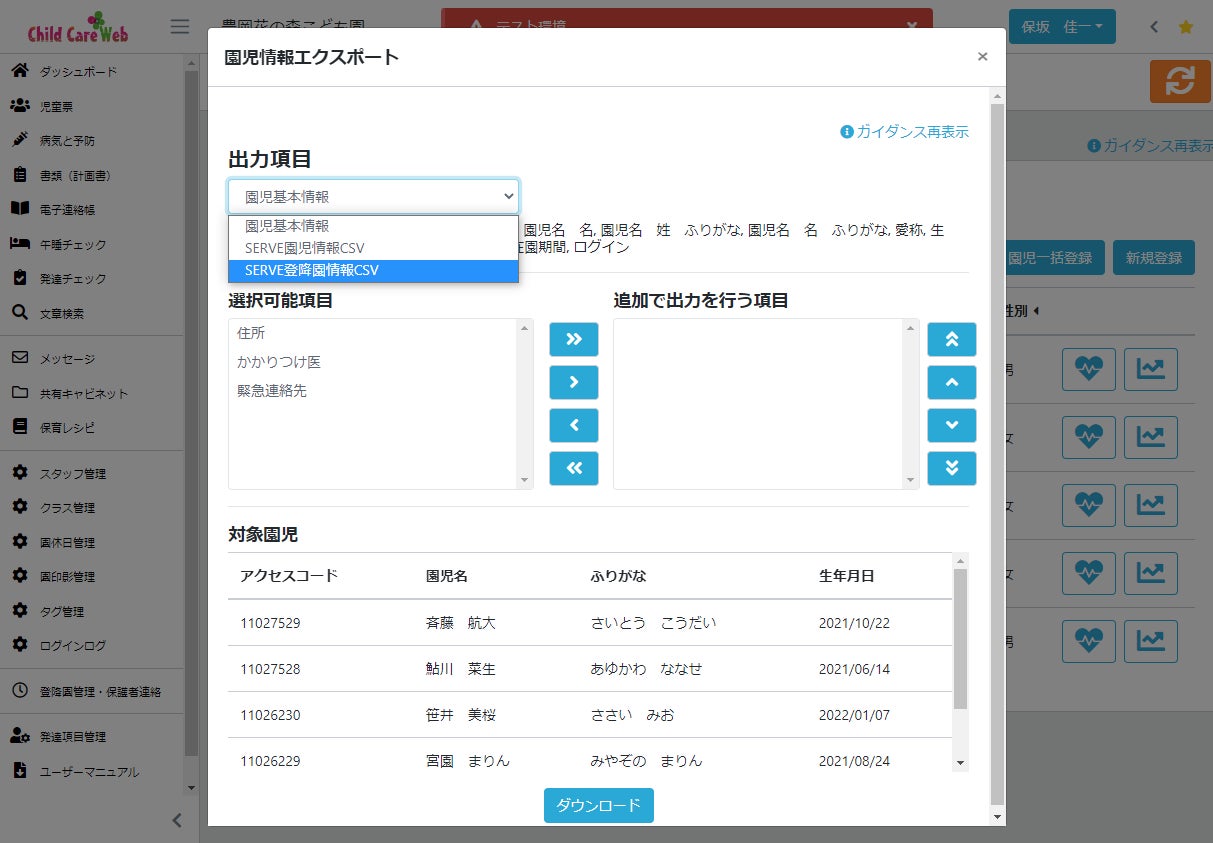 ChildCareWeb、園-SiEN登降園管理システム用のデータエクスポート機能をリリース