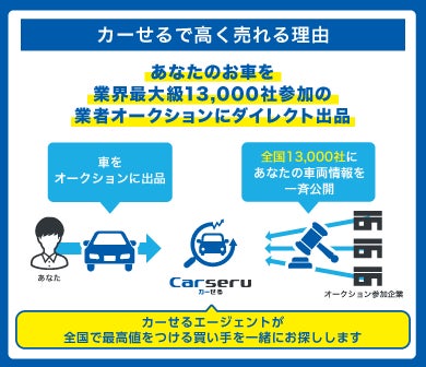 株式会社オークネット※1のグループ会社であるカーせるは、35年の中古車取引実績と業界最大級の取引法人ネットワークを持ち、お客様のご要望やご状況によって