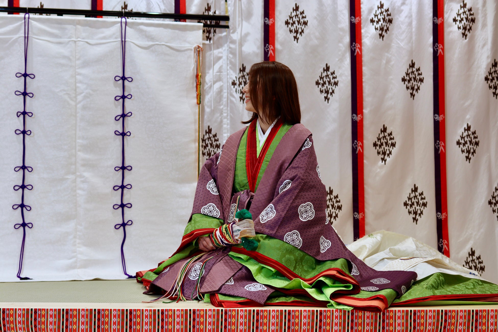 日本の伝統的な文化を身近に感じていただくため、当社は新しいステージへ進化し、お客様の快適な宿泊体験に刺激と彩りを添えることを目指します。十二単は日本の伝統的な衣装であり、その美しさと風格は外国のお客様にも大変人気です。