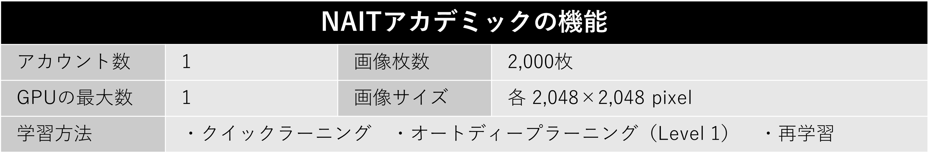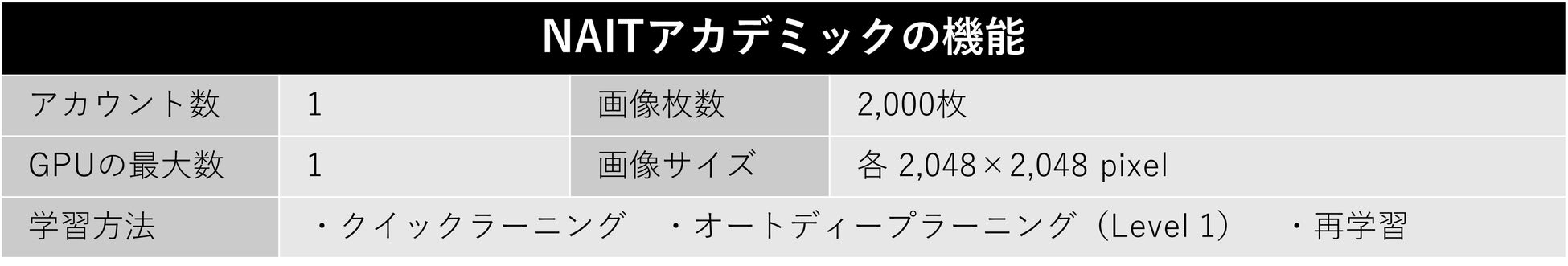 ・ディープラーニング画像解析ソフト「NAIT アカデミック ベーシックライセンス(※)」を同梱