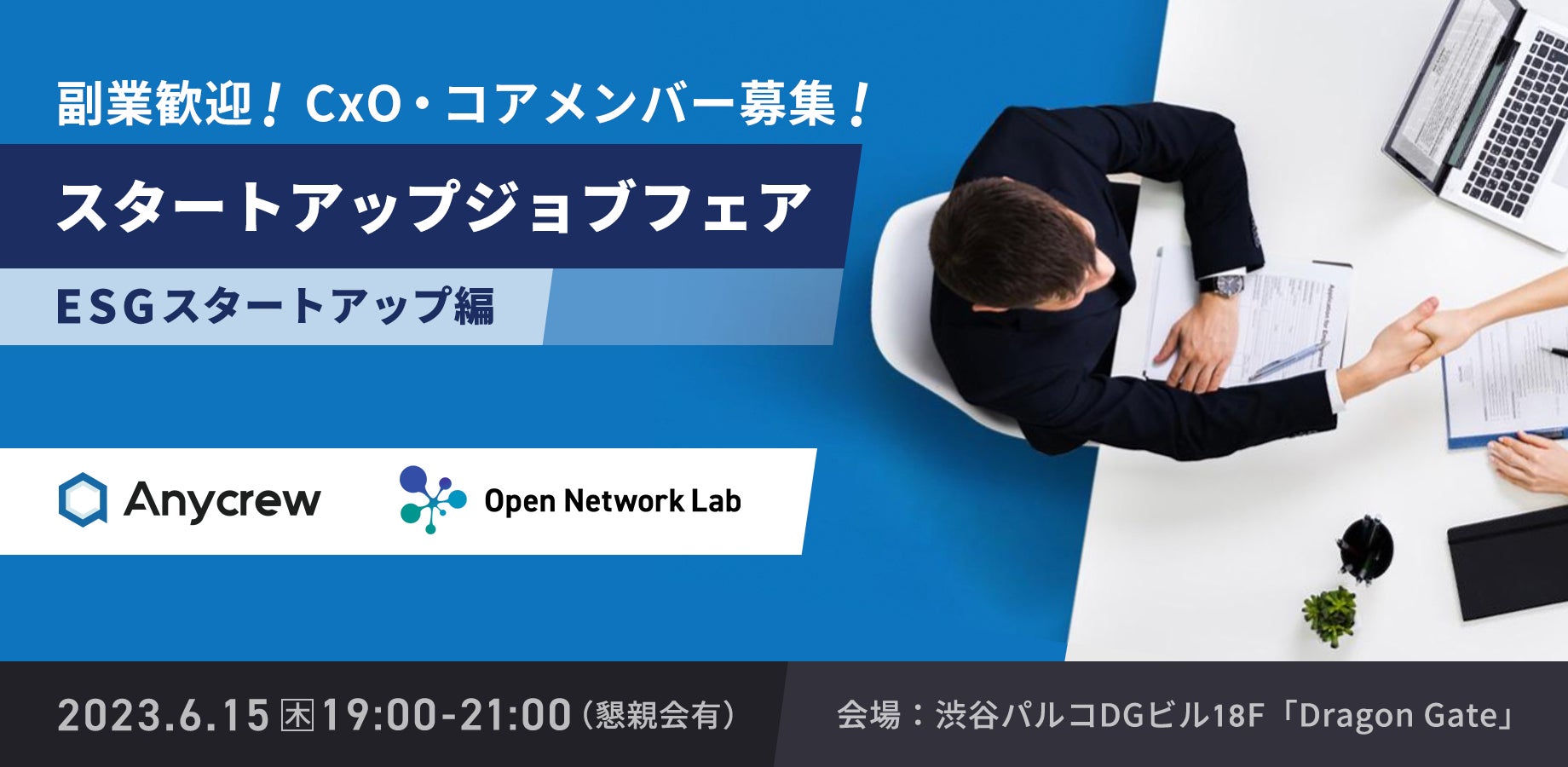 副業歓迎!CxO・コアメンバー募集! スタートアップジョブフェア - ESGスタートアップ編 - を開催