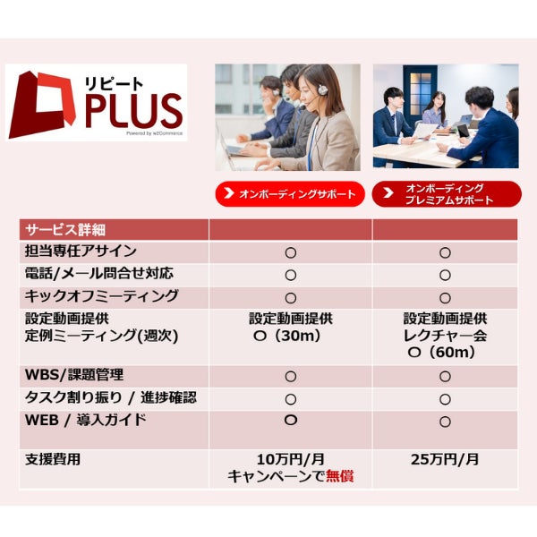 また、既存サービスの担当者によるフルサポートの導入プログラムは、「リピートPLUSオンボーディングプレミアムサポート」として、サポートサービスメニューの強化を行います。