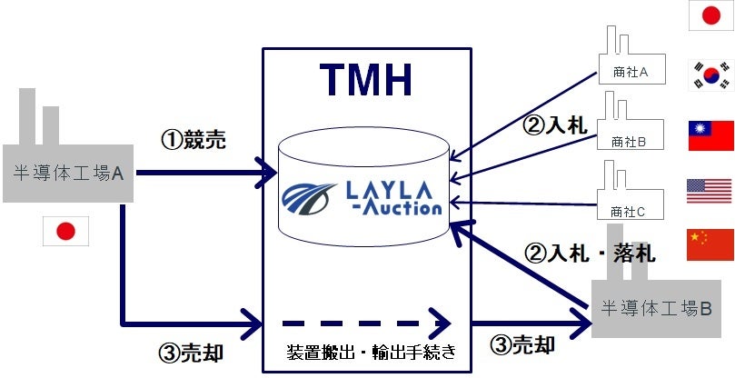 【大分県大分市、2023年6月7日付】― 株式会社TMH(本社:大分県大分市、代表取締役社長:榎並大輔、以後当社)は、日本の半導体工場における課題解決に向けた新たな取り組みとして、半導体製造装置に特化したオークションサイト「レイラオークション(https://www.layla-auction.com/)」を、2023年7月1日にリリースすることをお知らせします。