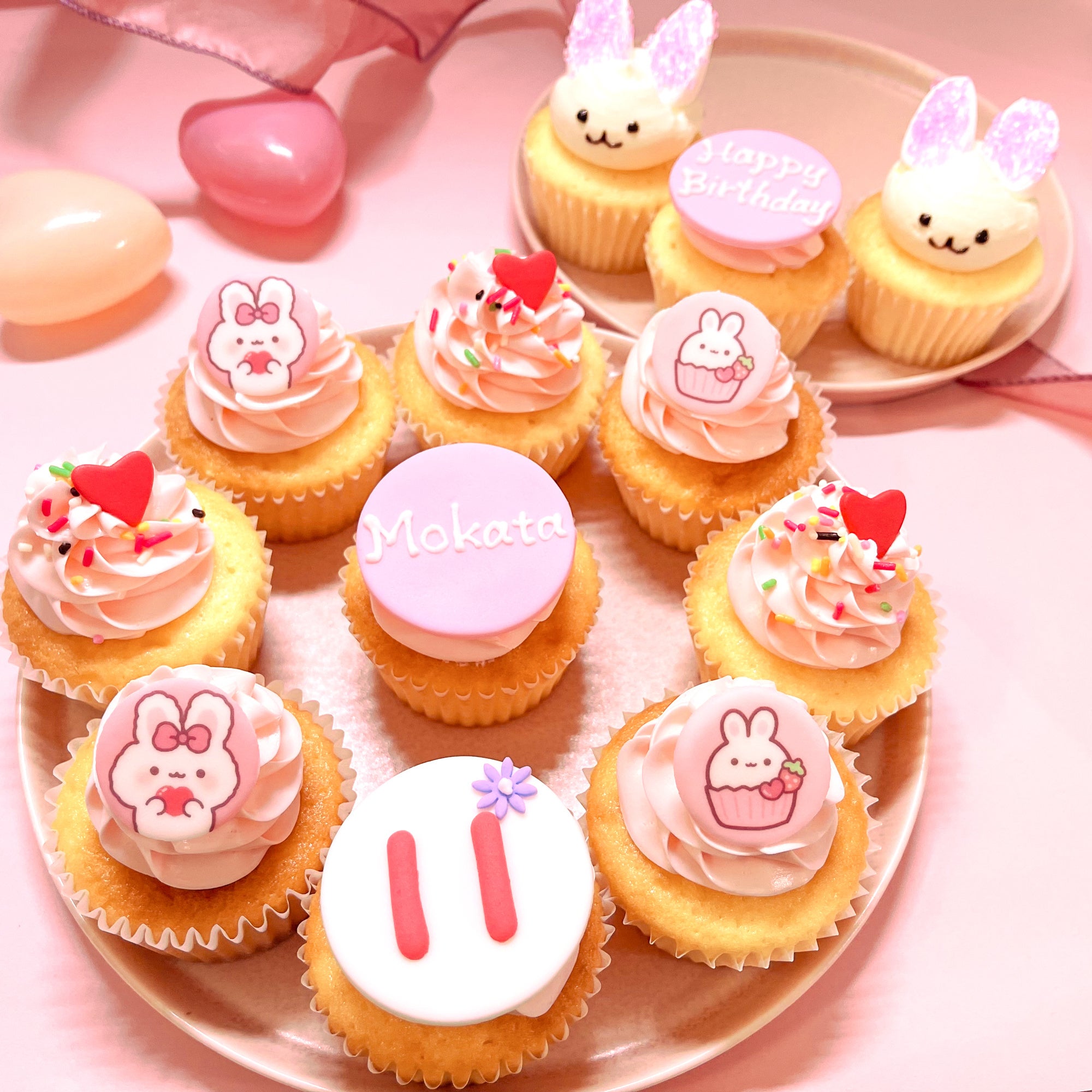人気のレギュラーサイズカップケーキ厳選10種類とバニーカップケーキ2種類を用意