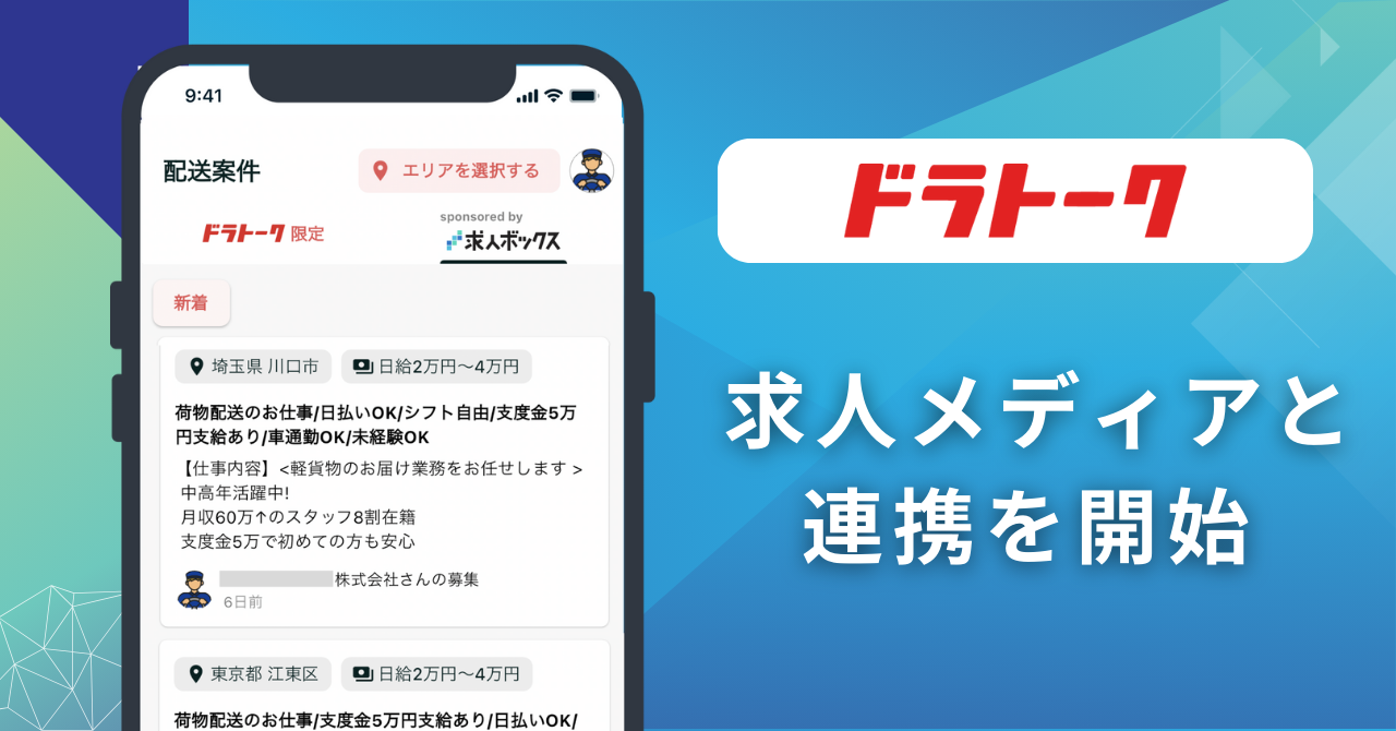 配送ドライバーのコミュニティアプリ「ドラトーク」が外部求人メディアとの連携を初めて開始