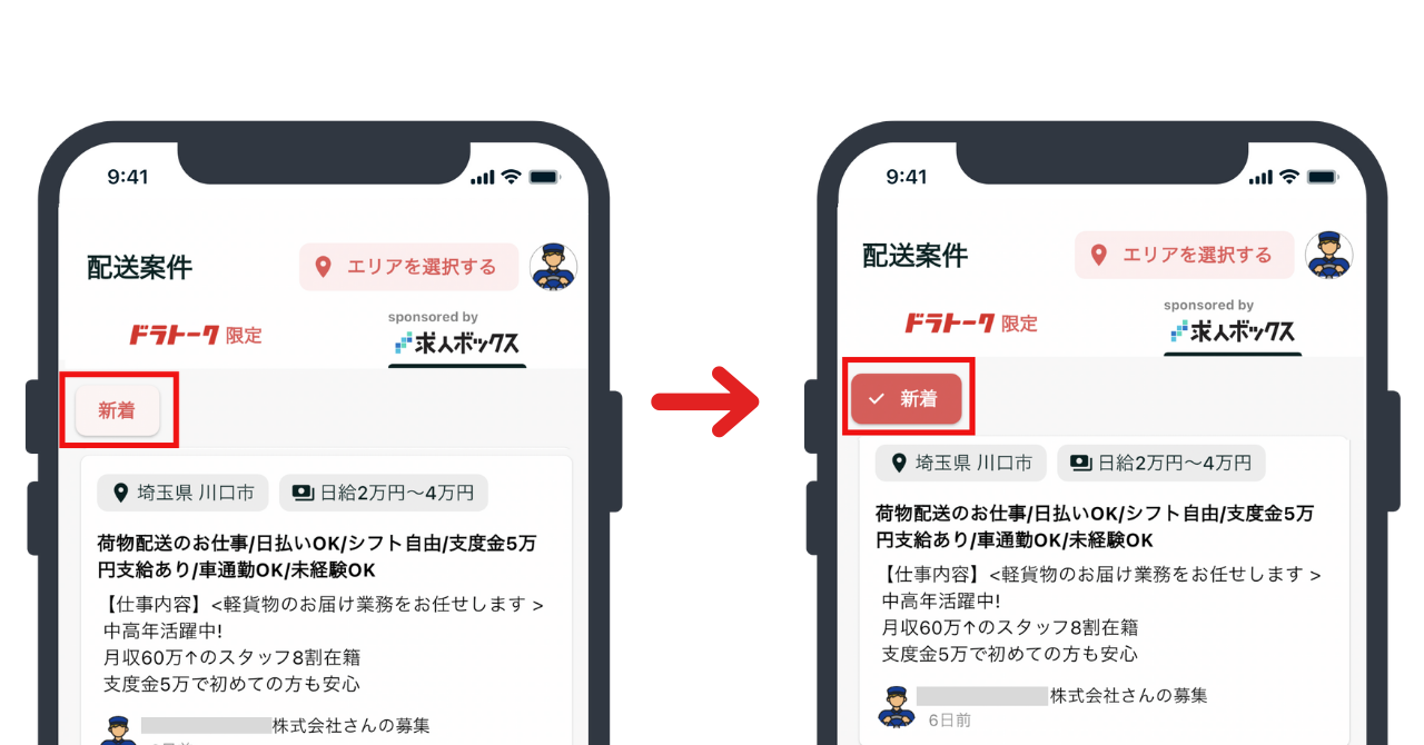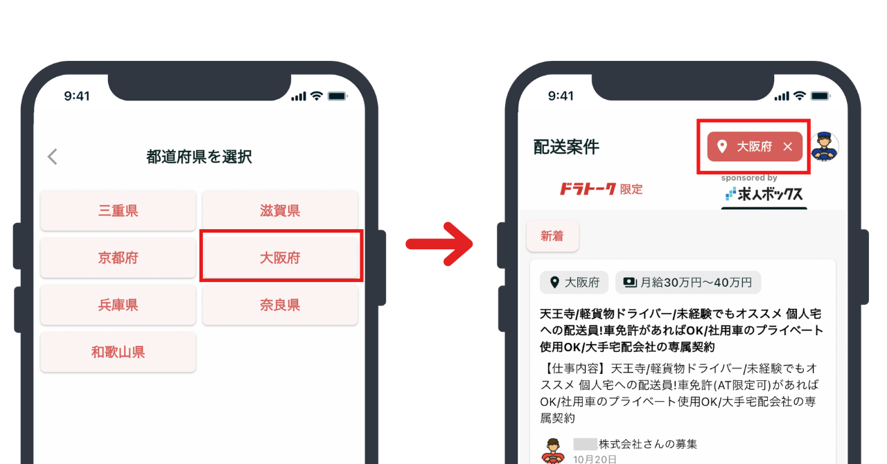 ドラトーク内で投稿された求人・配送案件に加え、外部求人メディアで募集されている求人にも応募できるようになりました。