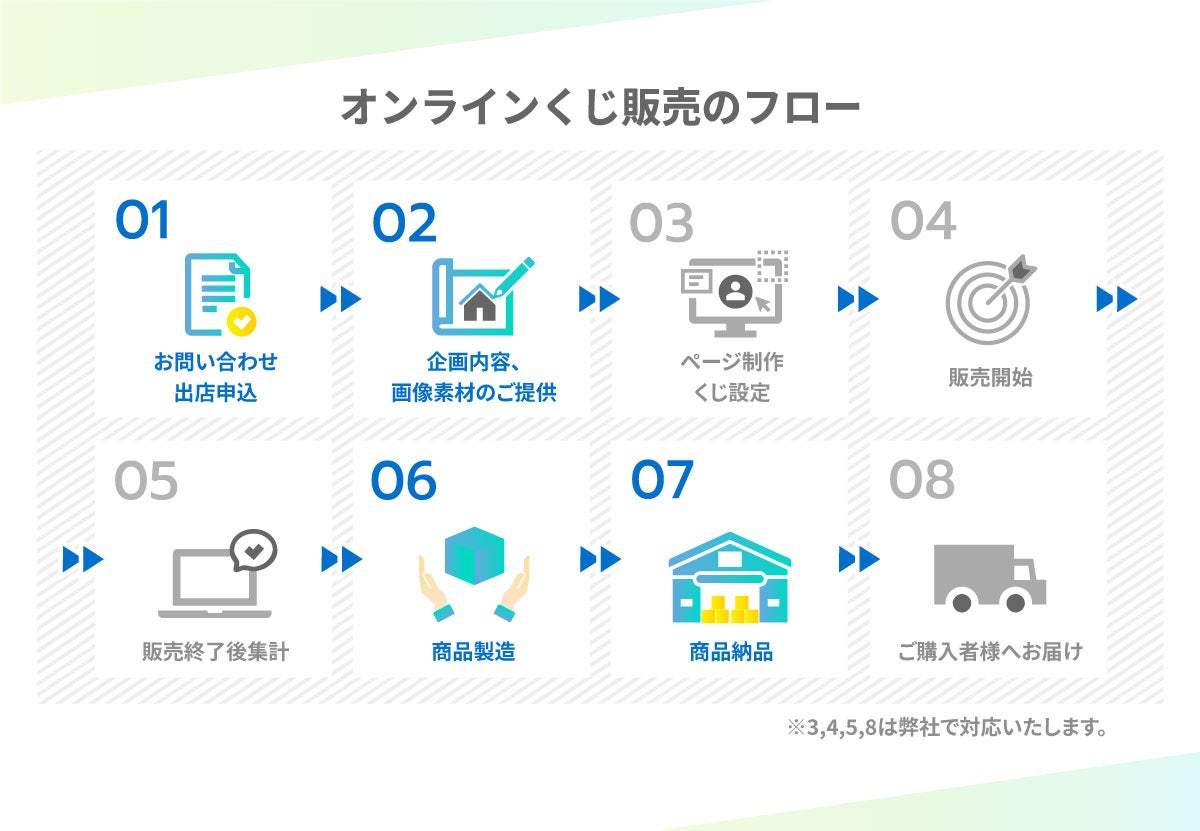 弊社が運営するオンラインくじサイト『Kujiiモール』(https://kujiimall.com/)で販売を行うため、サイト構築や決済審査等の面倒な作業、手続きが不要です。