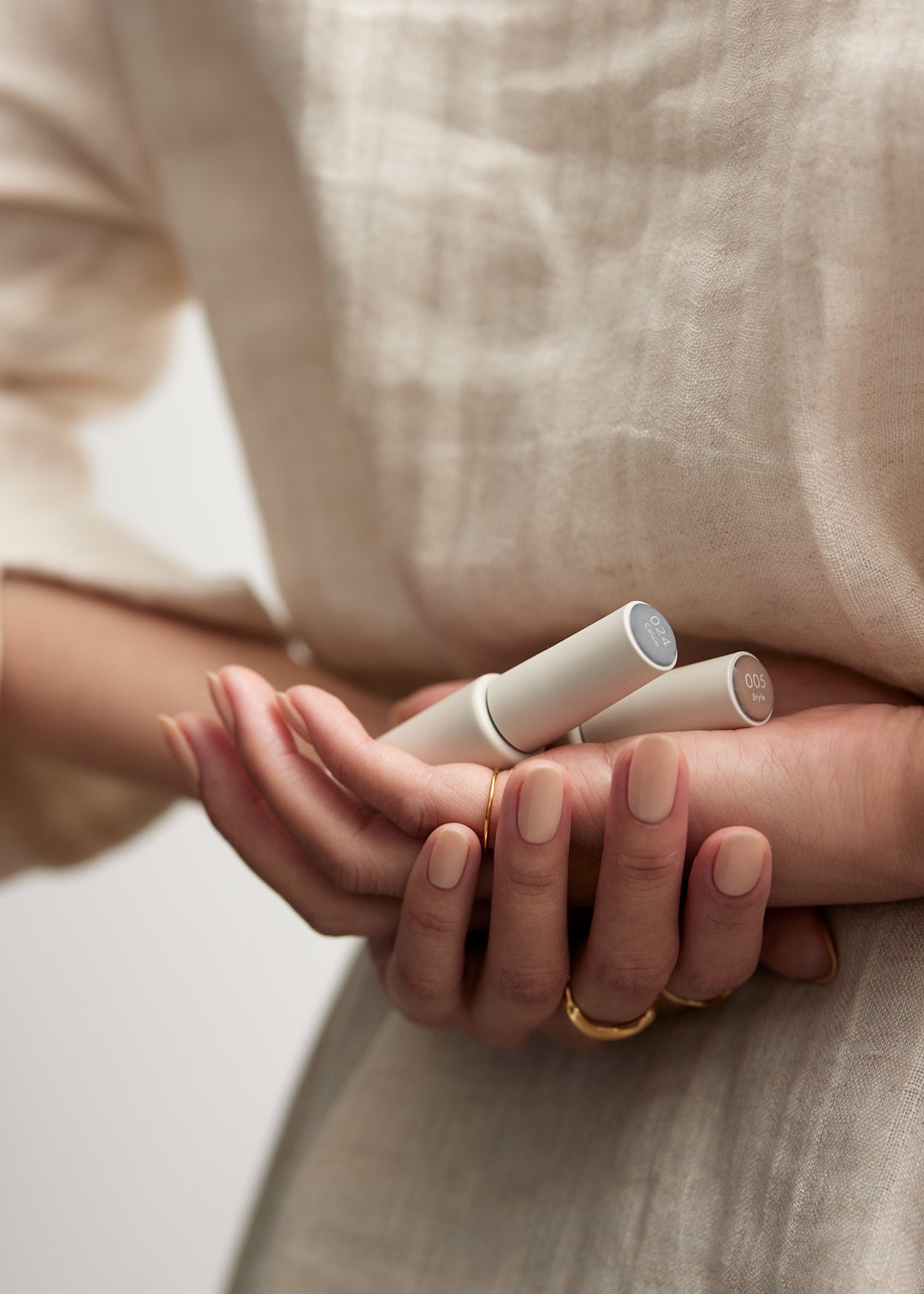 直接爪に触れる「ベースジェル」には、潤いを与える植物油を軸に配合。処方はAEAJアロマセラピストとして活躍する Yumiko Hara が監修。古くから民間薬として使われている「ローズマリー」や、皮膚や爪に潤いを与える「パルマローザ」「ユーカリ」のほか、爪を健やかに保つ「ティーツリー」の4種をセレクトしています。