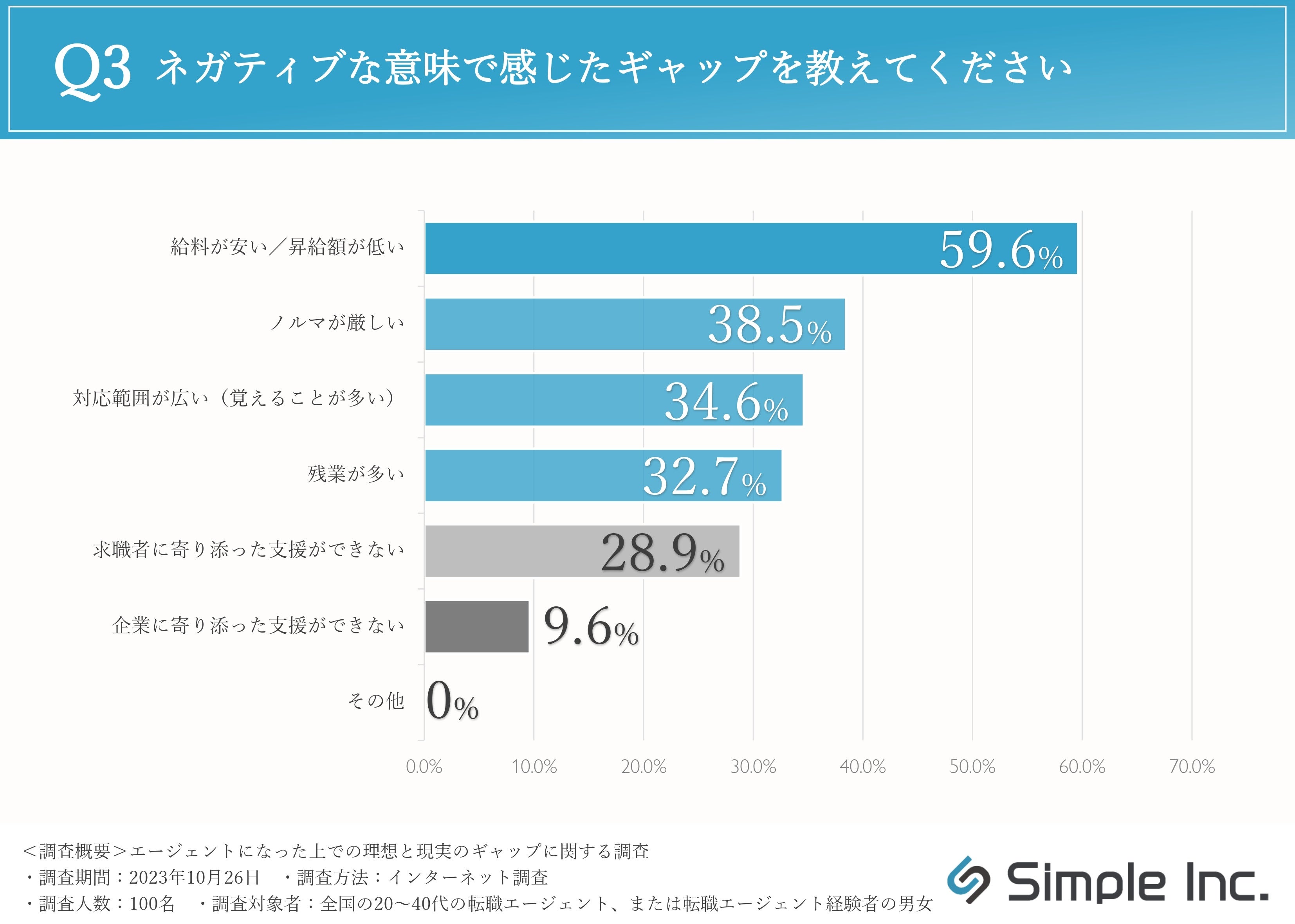 エージェントになった理由でも1位に挙げられていた給料は、もともと期待値も高くギャップを感じやすい要素だったのかもしれません。