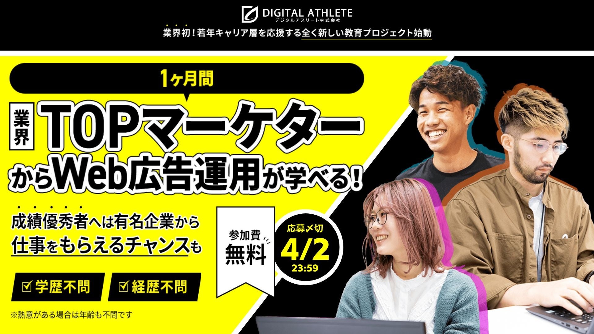 不問・経験不問。TOPマーケターが直接指導し、1ヶ月でWeb広告をマスター