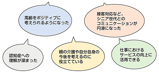 「ジェロントロジー検定試験」は、シニアへのサービスの提供を行う行政や金融、福祉事業の方々に役立つ知識はもちろん、シニア自身がこれからの生き方や暮らし方を選択するために、必要不可欠な情報を習得できる検定試験です。「仕事や日常生活に役立つ知識」として合格者の方々から好評をいただいており、ジェロントロジーを社員研修に取り入れる企業も増えています。