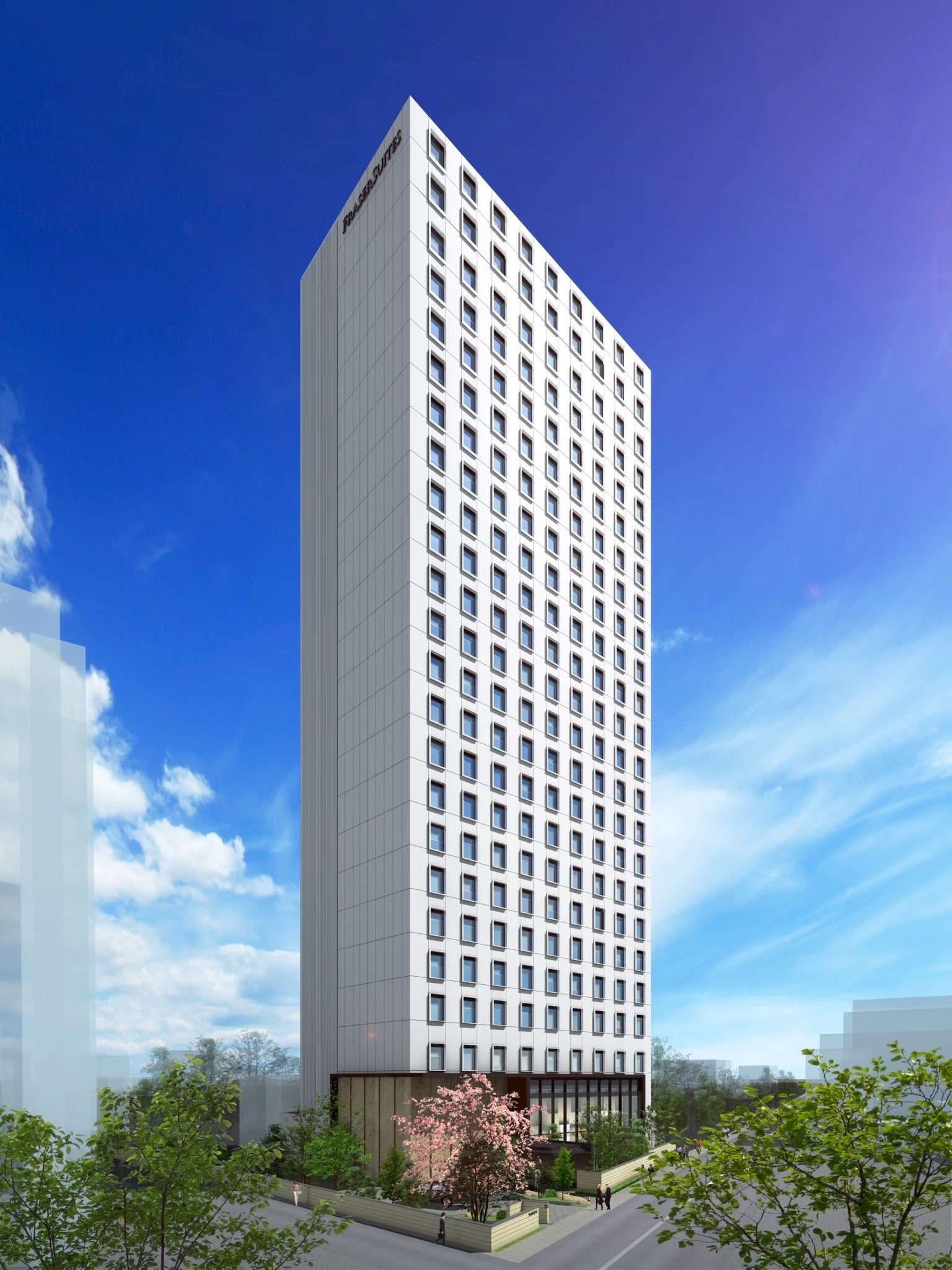 「フレイザースイート」はサービスアパートメント(*)を世界展開するフレイザーズグループ(本社:シンガポール)の最高級ブランド。224 の客室に加え、快適なインターネット環境や会議スペース、ヨガ専用ルーム併設の 24 時間営業のジムやゴルフシミュレーター、マッサージチェアー付リトリート等を備える。