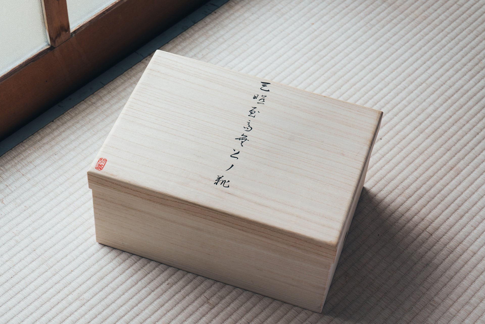 汎用モデルの「KUGUNOCHI-クグノチ-」は、よりシンプルなかぶせ蓋の桐箱で、こちらは天板の「桐尊」の朱印が特徴です。