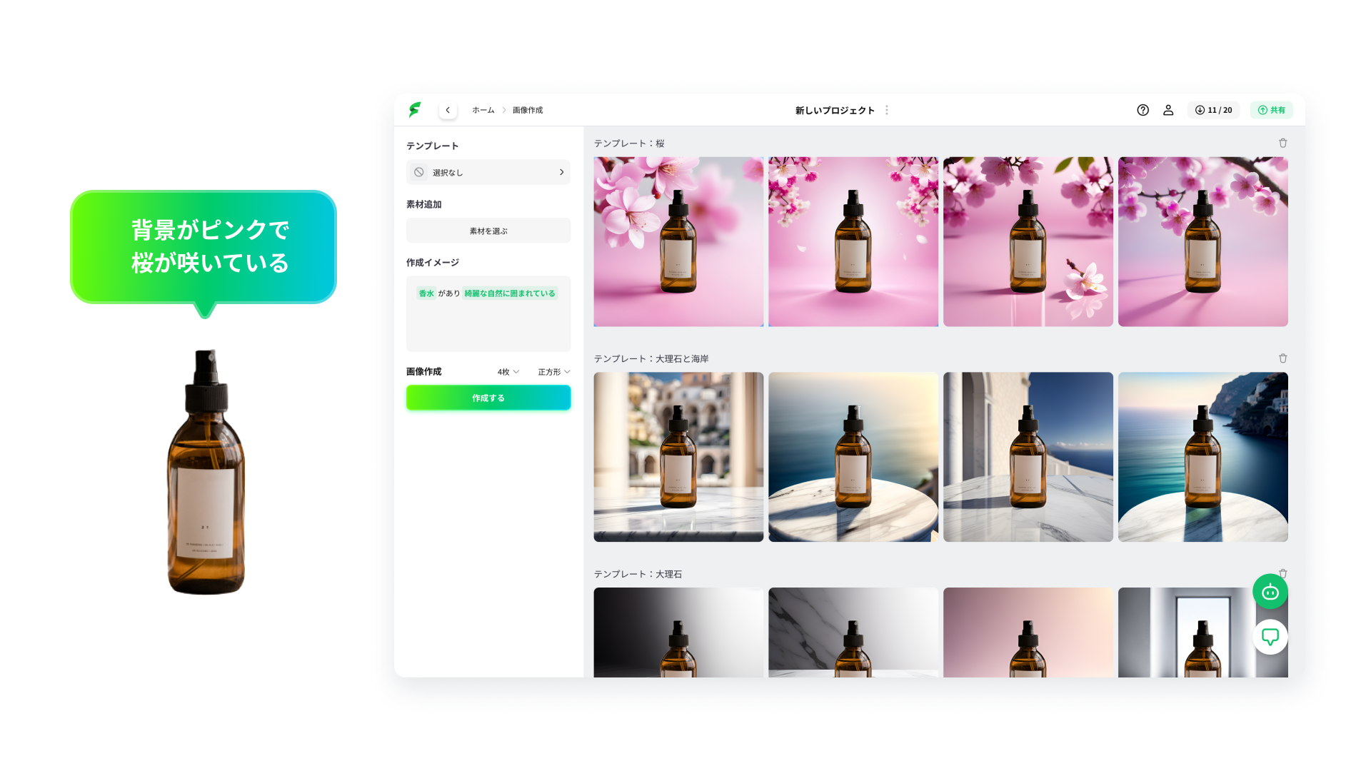 「フォトグラファーAI」は、EC事業運営や日々の業務の中で必要になる商品写真作成を生成AIの技術を活用して自動生成できるサービスです。サンプル画像をアップロードし、作成したい商品写真のイメージを入力もしくはテンプレートを選択するだけで、クリエイティブな商品写真を短時間で作成することが可能です。