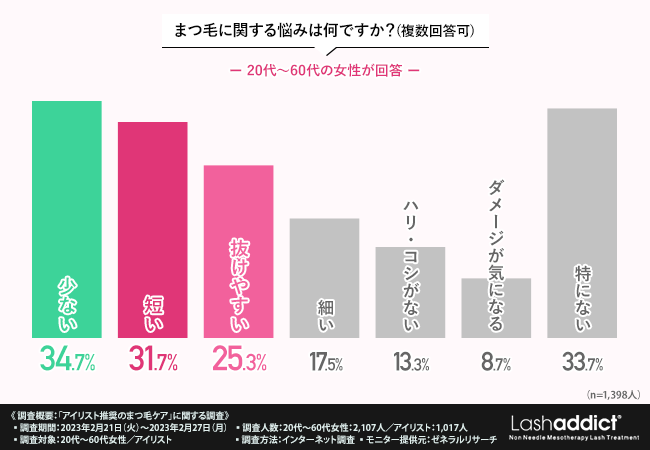 また、まつ毛が短いことや抜けやすいといった悩みもあることが分かりました。
