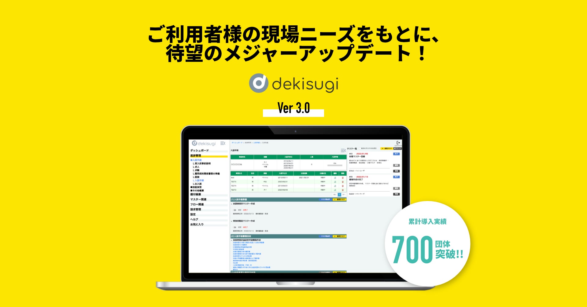 dekisugiは現在累計導入団体数700団体をこえ、比例してご利用者様から多くのご意見をいただけるようになりました。