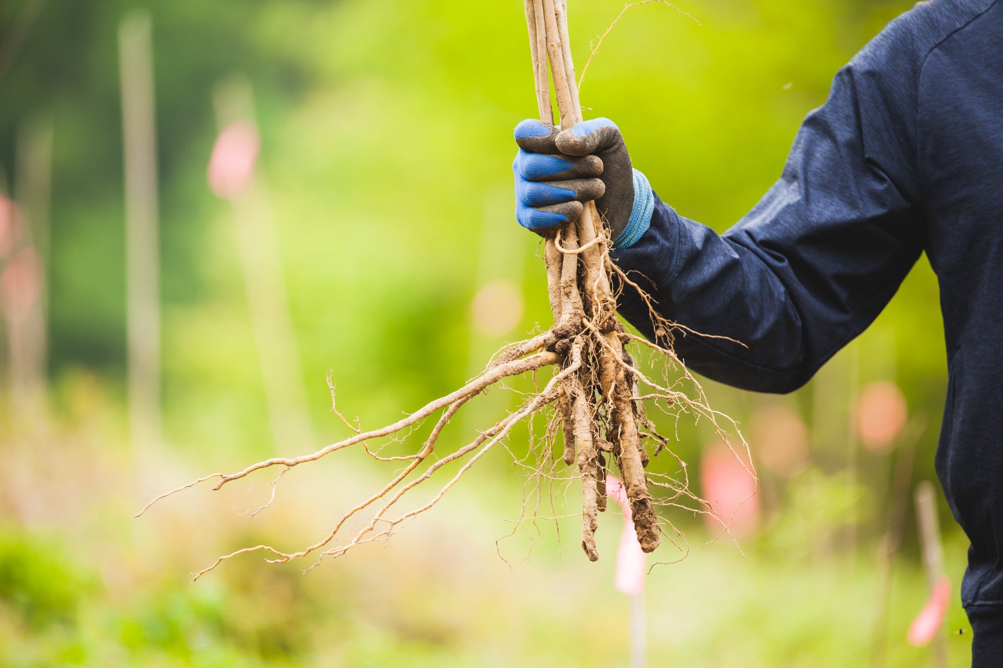 日野製薬本社の所在する木祖村やぶはら高原スキー場ゲレンデ跡地に、キハダの苗木を900 本植樹しました。地域の行政、団体、企業にご協力いただき、弊社社員を含む総勢34名で、キハダの苗木を一本一本植えました。急な斜面での作業でしたが、天候に恵まれ、無事に植樹を行うことができました。