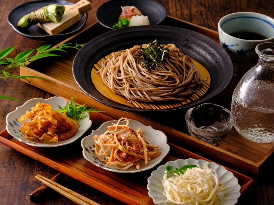 極上の手延べそばに加え、3種珍味の内容は、国産真いか(スルメイカ)を鉄板焼きしたあと、直火でさらに香ばしく仕上げた噛むほど味わいが広がる「焼きするめ」、国産真イカの表皮を丁寧に剥き、白く上品に仕上げ、ソフトな食感が魅力の「裂き烏賊」、国産ほたての貝ひもをバター醤油風味に仕上げたほんのり甘みが後を引く「ほたて貝ひも」のセットです。
