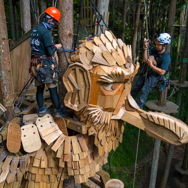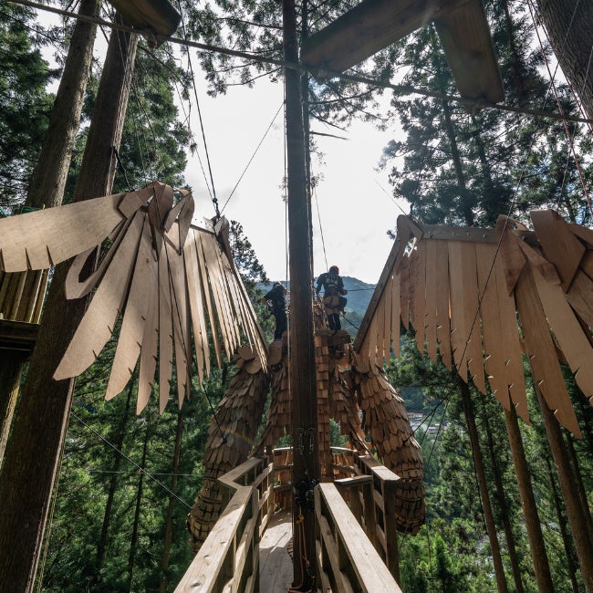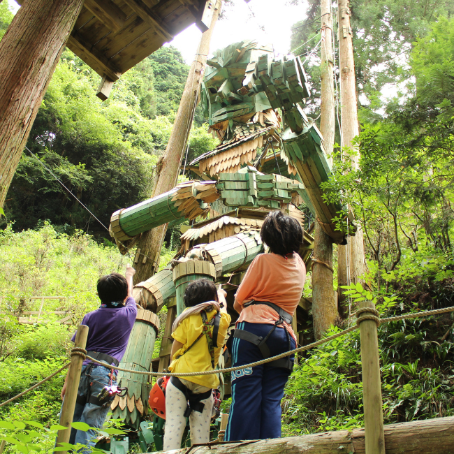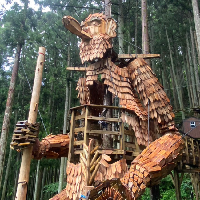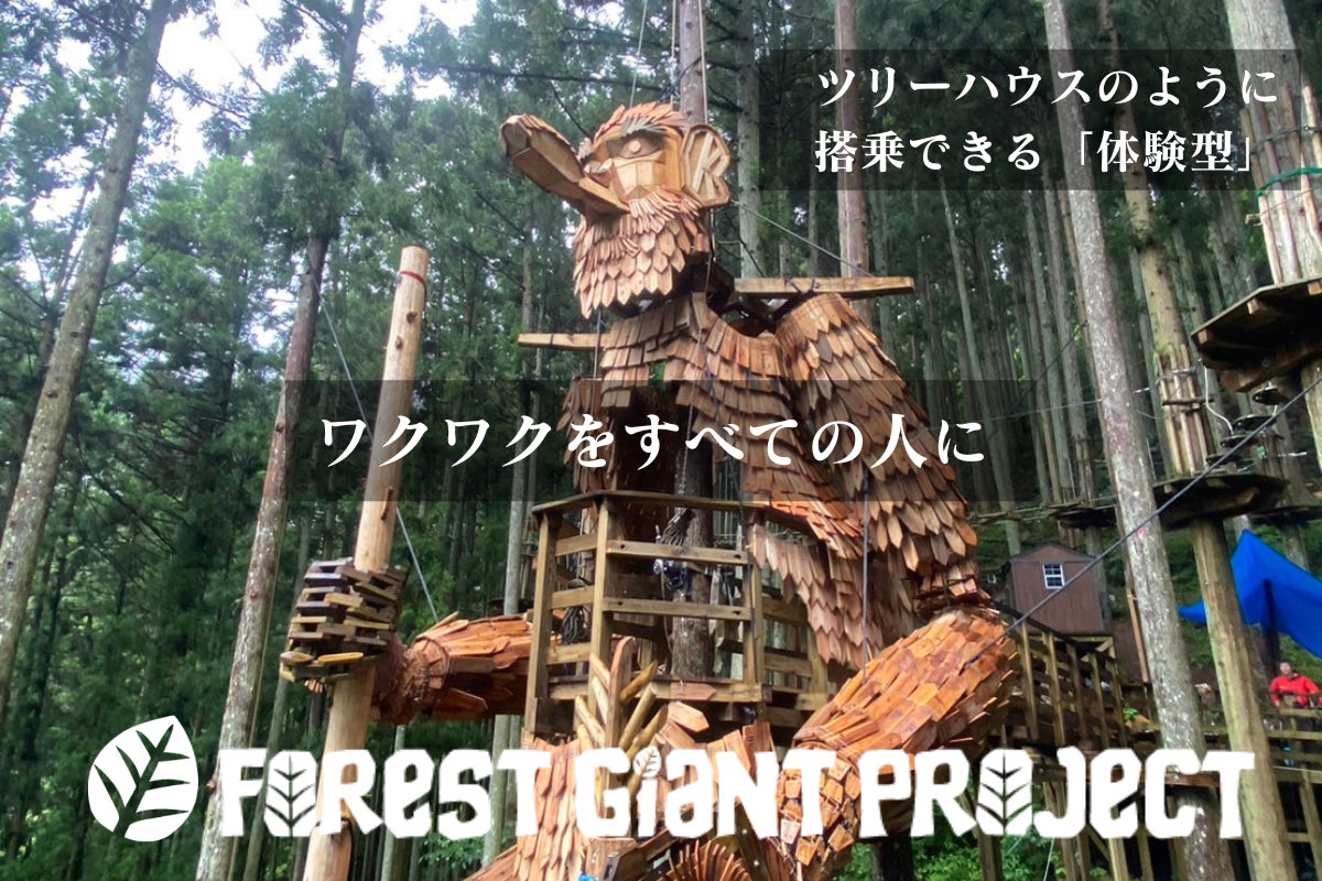 「ワクワクをすべての人に」を経営理念に地域の環境資源を生かしてアウトドアツアーとアドベンチャーパークを運営する株式会社ゴーゴーアドベンチャー(本社:徳島県三好市、代表:馬場 秀司)は、間引き伐採された杉や檜を活かして自然の森の中に10m以上の巨人のオブジェをつくるプロジェクトを2018年に立ち上げました。