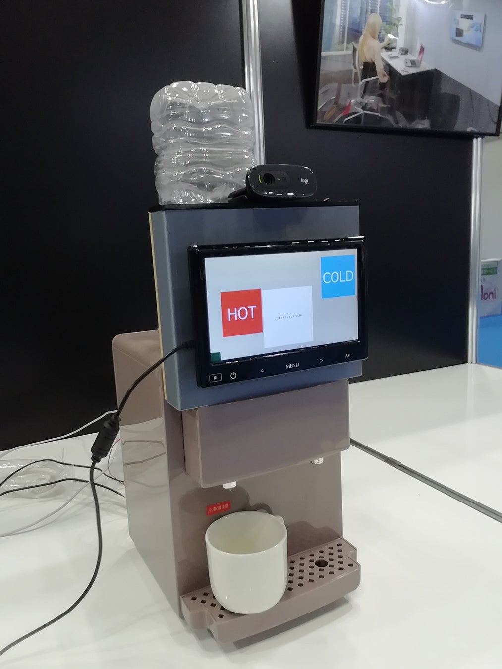 人差し指をかざして「HOT」か「COLD」の画像を所定の位置までドラッグするだけで「お湯」または「冷水」を給水できます。通常なら不特定多数の人が押すボタンに直接触れる必要がなく衛生的です。人差し指ジェスチャー以外には反応しないため、意図しない誤操作を回避できます(パーやグーでは反応しません)。