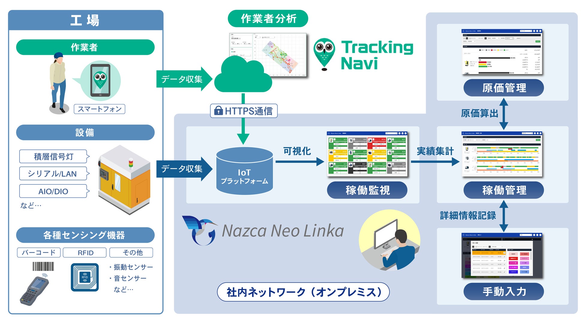 IoTによる工場の見える化システム「Nazca Neo Linka」が、作業者分析ツール「Tracking Navi」と連携